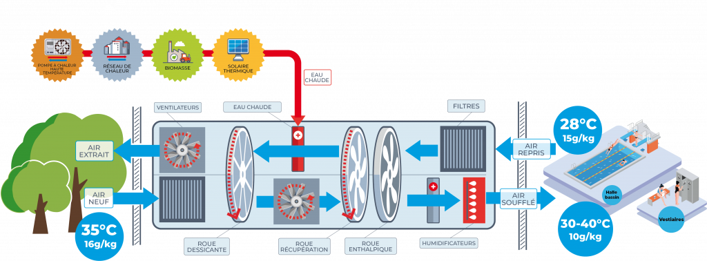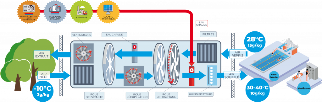 Sustain’air a installé en janvier 2018 un Systèmes de Traitement d’Air Airpool dans le centre nautique Aquavallées en Alsace. Un système unique qui réalise le traitement de l’air de la halle bassin et des vestiaires.